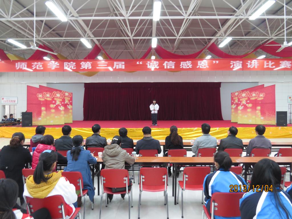 12月4日下午,金年会jinnianhuicom 第三届“励志自强,感恩诚信”主题演讲比赛在大学生活动中心顺利举办。学生处处长师建林、团委书记张春兴、资助中心主任赵军侠、金年会jinnianhuicom全体领导班子出席了本次比赛。郝正全、王泉珍、雷立英、吴胡清、辛晓峰老师担任了本次比赛评委。