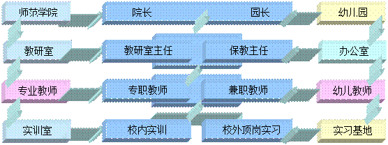 拓展校园合作渠道,加强与幼儿园的深层次合作,形成一套校园“四级对接”的长效机制,实现人才培养方案校园共商、师资队伍校园共建、课程资源校园共同开发、实训基地校园共建、顶岗实习校园共管、人才培养质量校园共评的运行机制。