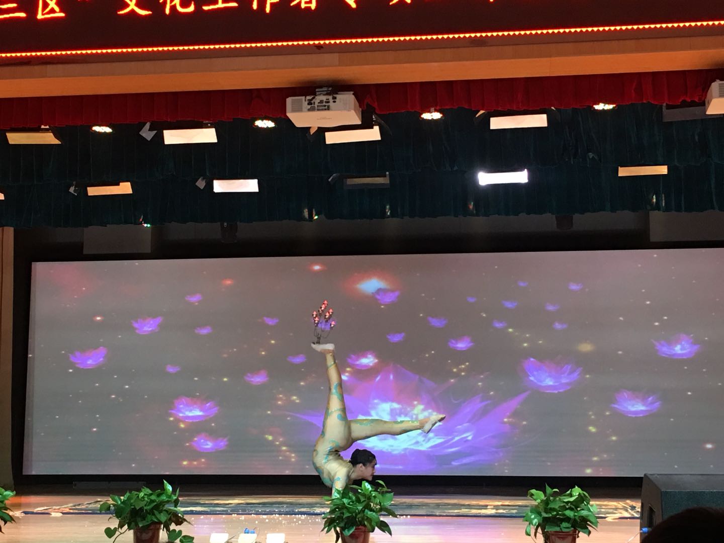 《滚灯》《翘碗》《女子技巧》《蹬技》四个节目将演出的现场气氛推向了高潮。优美的舞蹈与高难度的杂技技巧相结合,充分展现出杂技中力与美共存的独到之处。每一个动作都惊险刺激,让观众的心也跟随动作变换而跌宕起伏。尤其是《蹬技》更是博得现场观众阵阵掌声。这个节目是以足蹬物的杂技项目,显示双足的耍弄、平衡、表演、承重技能。表演者仰卧在小台上,双足向上,将各种轻重器皿家具置于脚上 ,靠脚的推动使其旋转 、腾翻 、改变角度,及至作出各种细致的难度很大的动作,表演种种技巧花样,给人留下难忘印象。