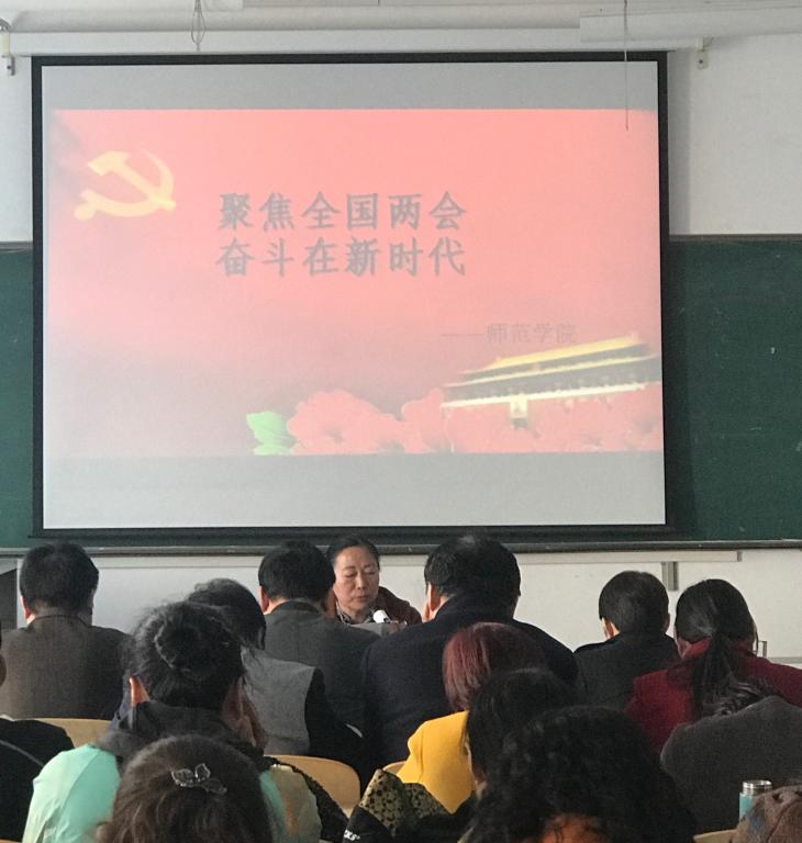 春回大地,万象更新。2018年两会帷幕落下,为了深入领会“两会”精神,3月21日下午,金年会jinnianhuicom组织全体教职工在师范楼305教师认真学习深入领会“两会”精神。
