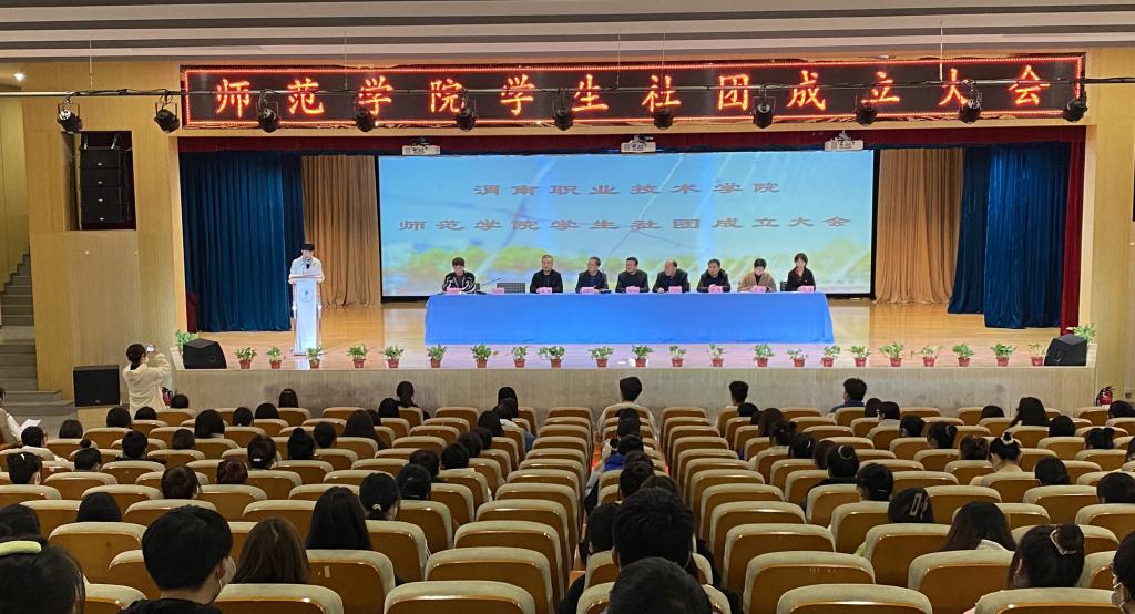 11月17日下午,金年会金年会jinnianhuicom在校图书馆一层学术报告厅召开学生社团成立大会。明心演讲社、News新媒体、大学生舞蹈团三个学生社团宣告成立。学校副校长杨宇清、学生处处长罗峰、宣传统战部副部长刘柯、校团委副书记冯晶出席。金年会jinnianhuicom党总支书记卢百龙、院长郭楚伟、党总支副书记黄翠萍、各社团指导教师和90名社团会员代表参会。