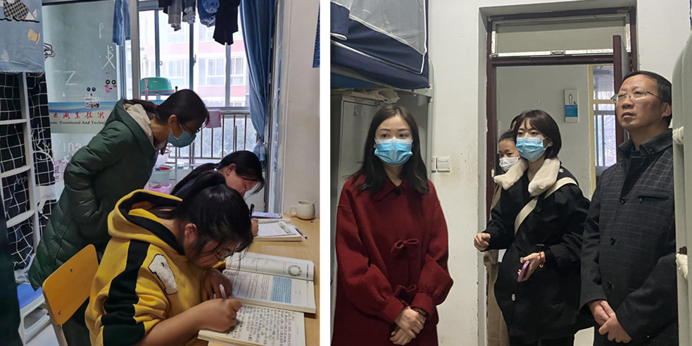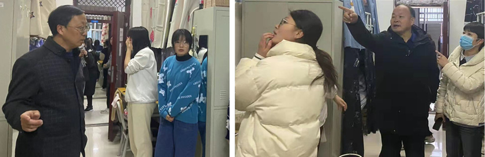 下午4:30,在党总支书记卢百龙、院长郭楚伟、党总支副书记黄翠萍带领下,巡查组一行深入学生宿舍检查。巡查组采用询问、查看相结合的方式,对学生宿舍环境卫生和“三进”工作、“和”文化建设情况进行全面了解。摸清了底子,掌握了全面情况,对取得的工作成效、存在的主要问题、需要采取的提升措施做到了心中有数。在了解建设情况的同时,巡查组各位老师还主动了解学生的生活困难与急需解决的问题,现场协调,现场解决学生急难愁盼的实际问题,并对宿舍中的安全隐患进行逐一排查。