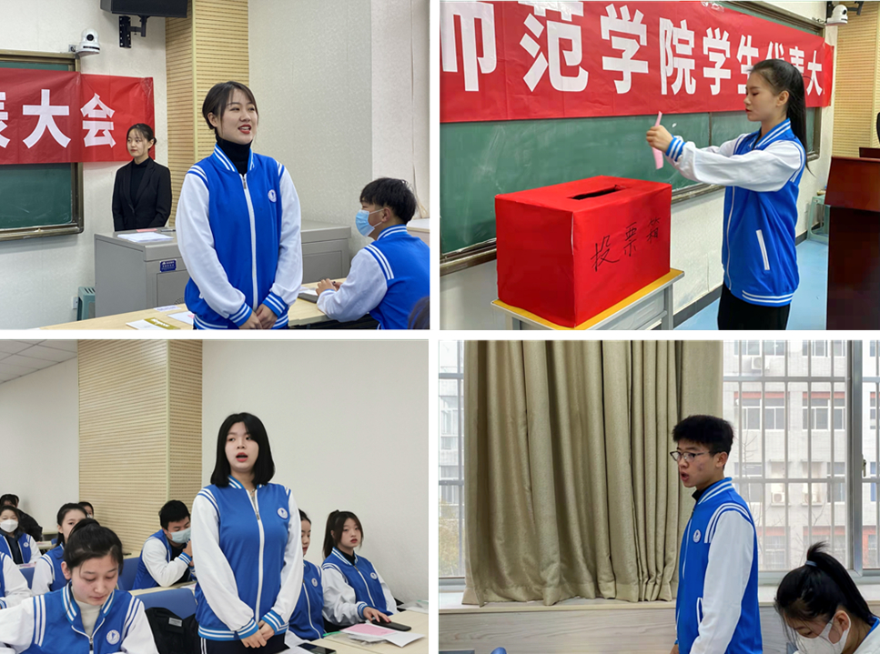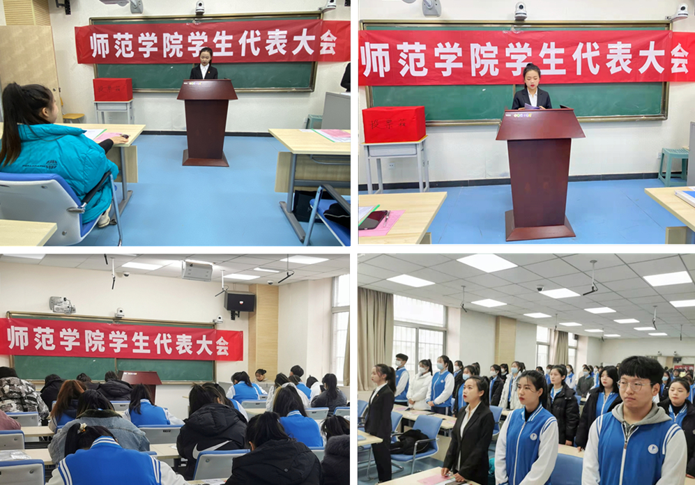12月16日上午,金年会jinnianhuicom第二次学生代表大会在师范楼信息录播中心隆重召开。金年会jinnianhuicom学生党支部负责人左馨、学生科负责人叶蕊、团总支副书记韩可欣、学生会主席团以及各班级学生代表参加本次会议。大会分为预备会议和正式会议,由团总支副书记韩可欣主持。