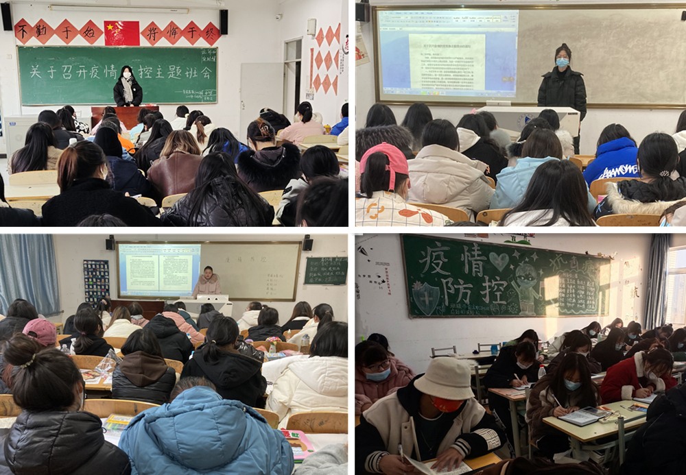通过播放相关的疫情防控视频和学习防疫知识,使全体学生将疫情防控知识入脑入心,强调大家要做好自我防护,督促全体学生严格执行学校疫情防控工作要求,保持个人及集体卫生,避免在人员密集、通风不良的场所逗留,并做到清洗手、勤消毒,建议大家合理安排作息时间、适当锻炼身体来增强自身免疫力,携手共建安全、健康、和谐校园。