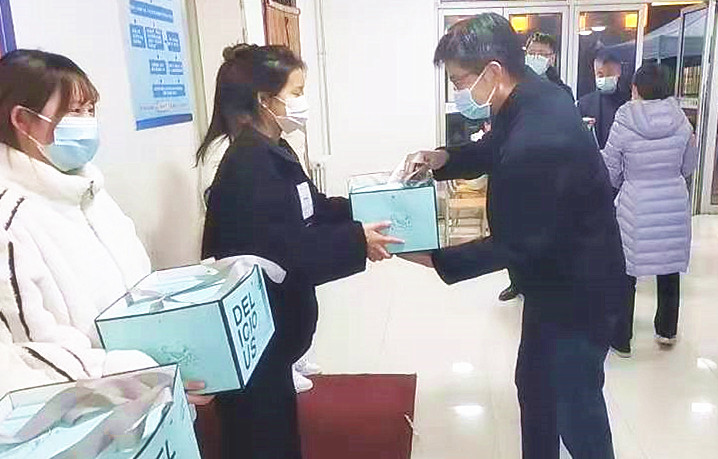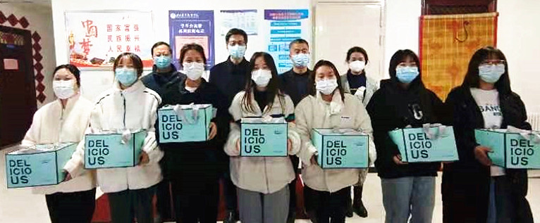 1月1日晚,校长靳华锋在校党政办主任雷建文、金年会jinnianhuicom院长郭楚伟陪同下来到宿舍静止管理中的金年会jinnianhuicom7号学生公寓楼,向当天过生日的同学们送上了生日蛋糕并代表学校表达亲切的慰问和祝福。