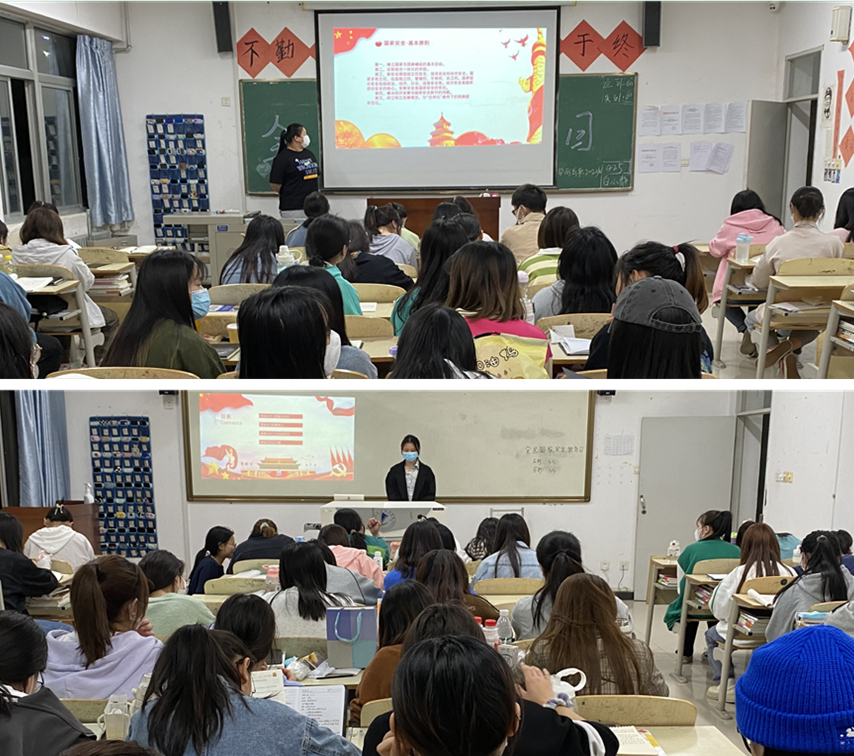 团课上各班团支书带领同学们学习了《国家安全法》、《反间谍法》、《反恐怖主义法》等法律知识。通过播放相关视频、PPT展示、现场解说等形式讲解了全民国家安全教育日的由来、含义、主要内容以及当前国家安全形势等相关知识。集中观看了全民国家安全教育日保密宣传片,结合具体案例详实介绍了危害国家安全的行为及其危害性,让同学们深刻的了解到,在互联网时代,信息的传播和扩散极为迅速,我国面临的保密形势更为严峻,更需要全民提高保密意识,每一名中国公民都有保守国家秘密的义务,国家安全,人人有责,要坚持总体国家安全观,积极维护国家安全。
