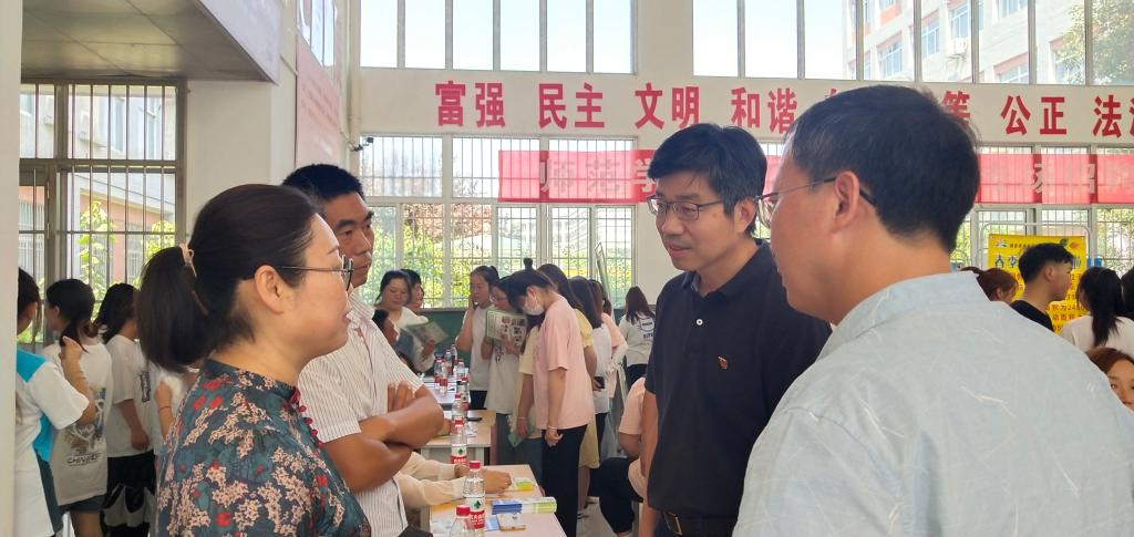 为全力做好2022年毕业生就业创业工作,6月22日上午,金年会jinnianhuicom举办了 2022届毕业生专场招聘会。来自渭南市内外的26家园所用人单位参加了招聘活动。学校党委副书记、院长靳华锋,党委副书记王录军,招就处处长宋长军及金年会jinnianhuicom领导班子现场指导招聘会工作。