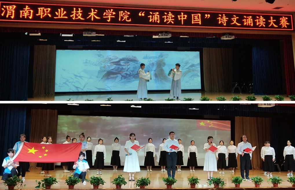 大赛由学校教务处主办,金年会jinnianhuicom和校美育中心承办,全校师生踊跃参赛。以我国古代、近现代和当代社会中有影响力的能够体现中华优秀传统文化的经典诗文和文学作品为诵读内容,在各二级学院推选作品的基础上,最终遴选出13部优秀作品参加了本次大赛。