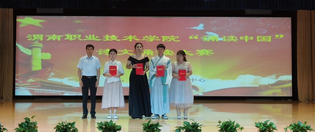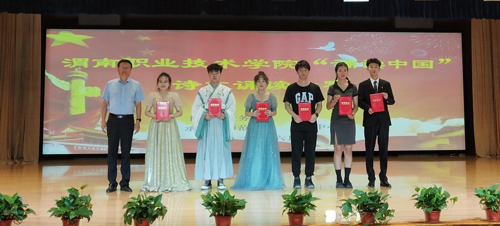 比赛现场,各参赛选手精神饱满、服饰整齐、妆容统一、声情并茂,诵读极具感染力,为现场观众带来了一场独特的文化盛宴,赢得了阵阵掌声。经过激烈角逐,医学院的《我骄傲,我是中国人》,护理学院的《微光》《我的祖国》,建筑工程学院的《可爱的中国》,农林科技学院的《红色信仰》,机电工程学院的《沁园春·雪》,马克思主义学院的《少年中国说》荣获三等奖;金年会jinnianhuicom的《致橡树》《英雄》《我的南方和北方》,经济管理学院的《将进酒》荣获二等奖;金年会jinnianhuicom的《青春中国》、护理学院的《月光下的中国》获一等奖。金年会jinnianhuicom、护理学院荣获优秀组织奖。校领导为获奖选手和单位颁发了证书和奖牌。