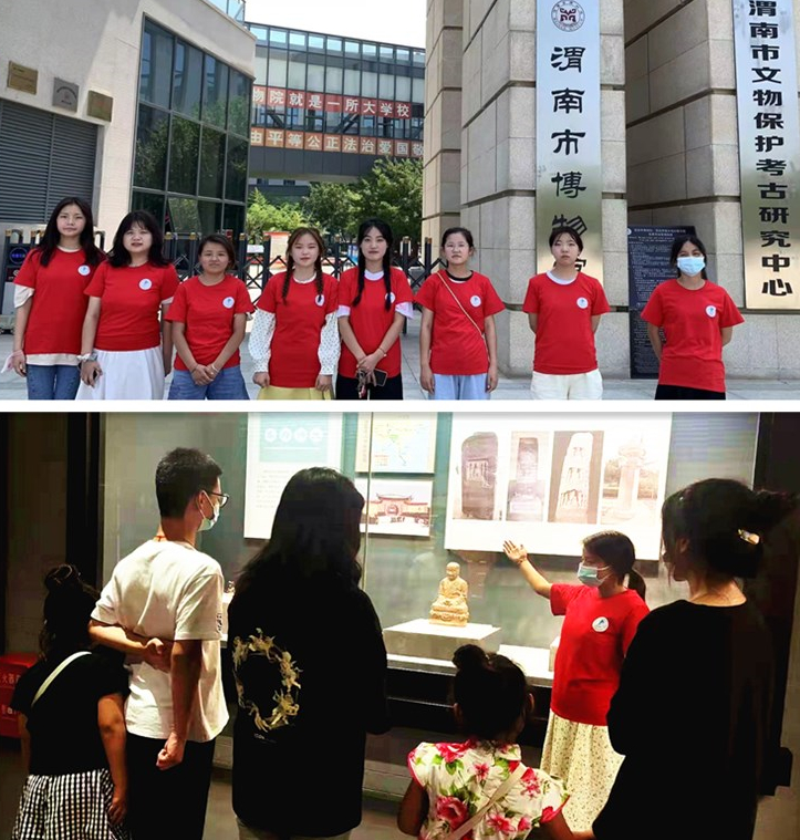 8月1日,金年会jinnianhuicom暑期“三下乡---了解历史”小分队走进渭南博物馆开展了“暑期了解历史、见证祖国伟大发展”的社会实践活动。小分队一行8人赴渭南博物馆,进行了为期两天的义务宣讲活动。馆内,她们身着统一服装,精神抖擞地向参观者介绍着渭南的发展变迁。从最早发现的渭南地区人类活动轨迹,了解了原始人从使用简单的器具到造字记录生活以及百姓日常生活中的酒文化、茶文化、农耕文化以及兵器文化等,见证了历史长河中人类的发展,感受到我们国家历史的源远流长。学生们通过宣讲活动提升了个人综合能力,锻炼了口才,又深入地了解了渭南辉煌灿烂的过去,体验到博大精深的中国文化,更进一步地增强了文化自信。