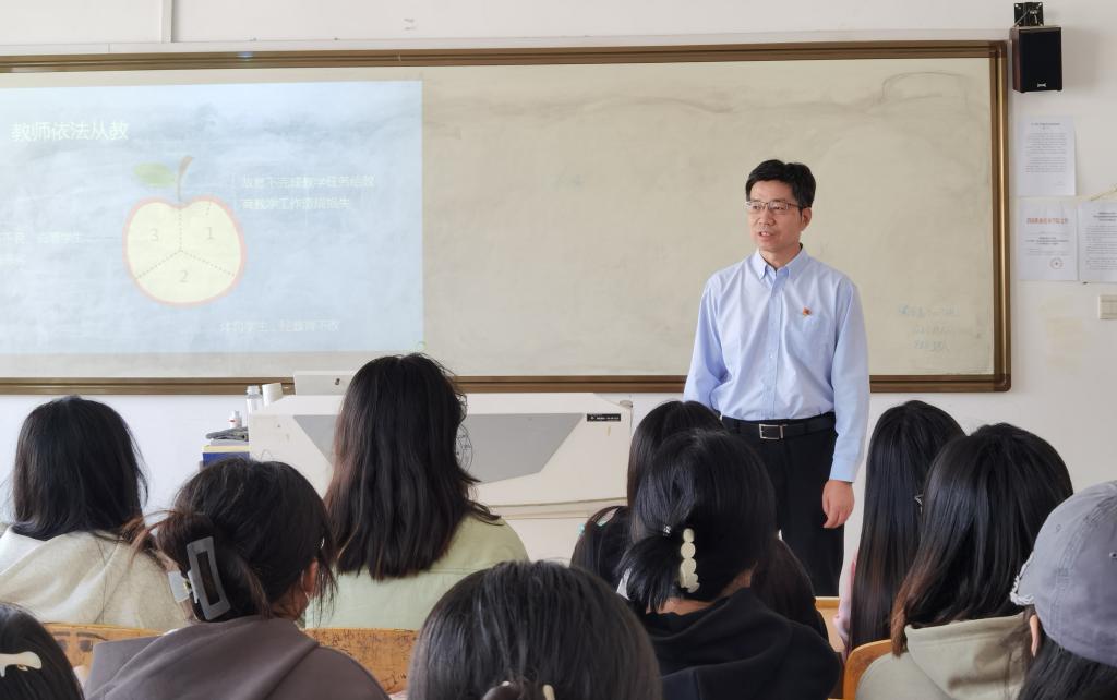 9月26日上午,校长靳华锋在党政办主任雷建文陪同下来到联系单位金年会jinnianhuicom,深入学前五高2003班听取了孙蕾飏老师的一节《教师职业道德》课。听课结束后,靳华锋勉励学生要刻苦学习,精技强能,努力成为堪当社会大任的时代新人。