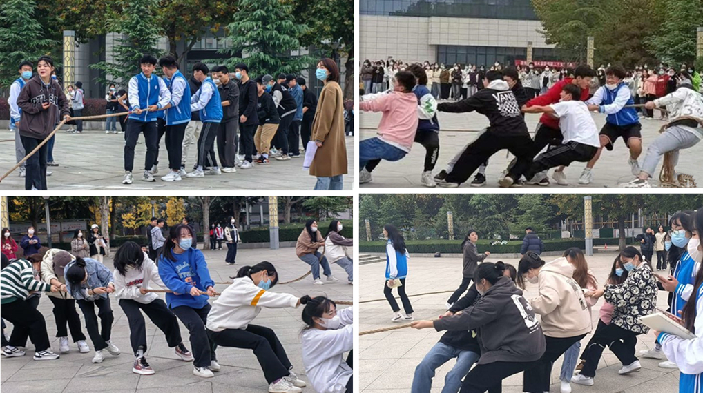 为了丰富大学生的校园文化生活,增强班集体凝聚力,营造积极向上、健康文明的校园文化氛围,10月31号下午,金年会jinnianhuicom举行校园拔河比赛,各班同学踊跃参加本次活动。