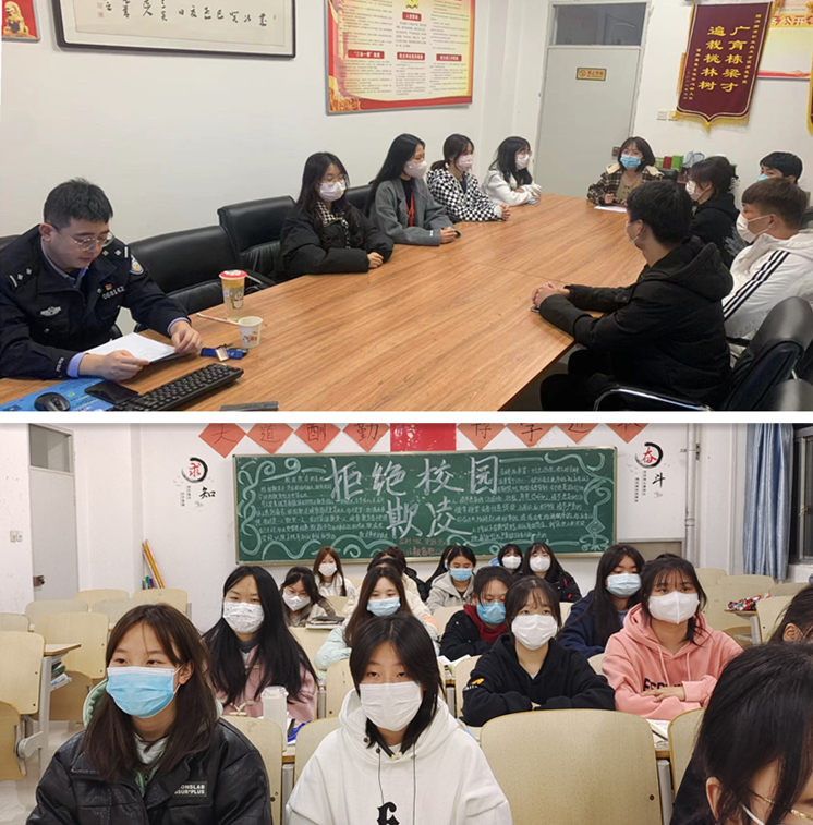 为增强学生防范欺凌意识,确切有效的预防校园欺凌事件发生,维护和确保学校的稳定和发展,构建和谐良好的学习环境,11月14日,金年会jinnianhuicom邀请渭南市高新区白杨派出所民警屈警官在线上为金年会jinnianhuicom学生开展“拒绝校园欺凌,防范校园暴力”知识讲座,金年会jinnianhuicom各班同时开展主题班会。