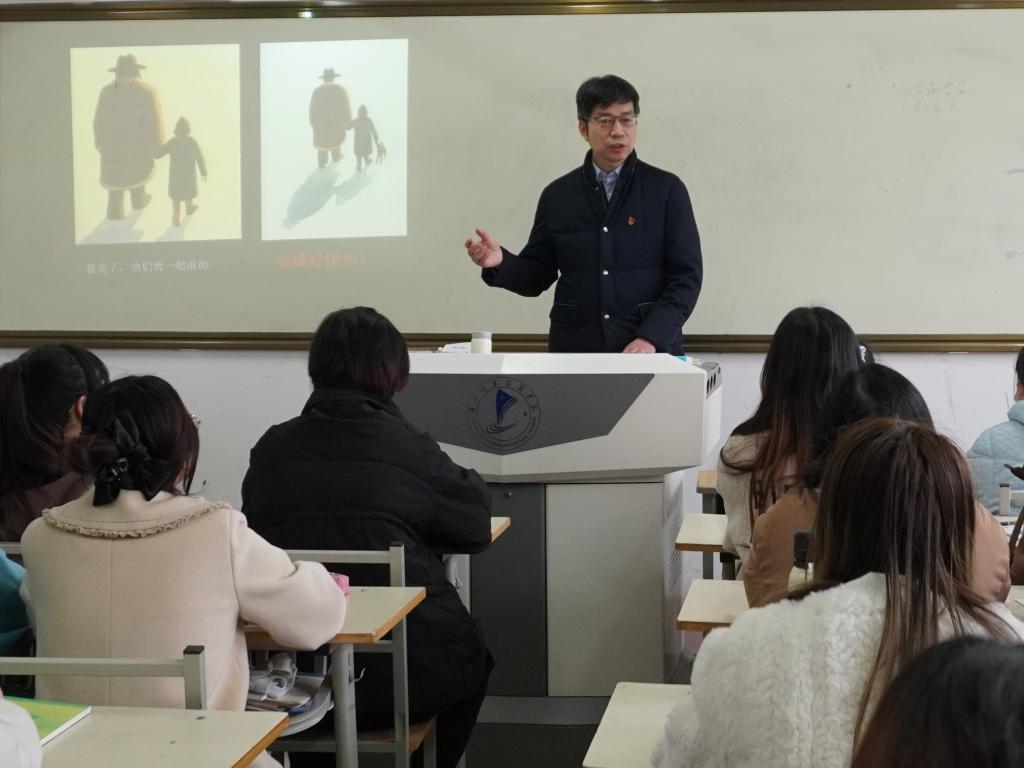 在金年会jinnianhuicom副院长于晶汝陪同下,靳华锋听取了姬芳芳老师的《经典绘本导读》一课。认为金年会jinnianhuicom开学教学总体秩序良好,准备工作充分,师生精神饱满,并对课堂教学质量给予认可和肯定。