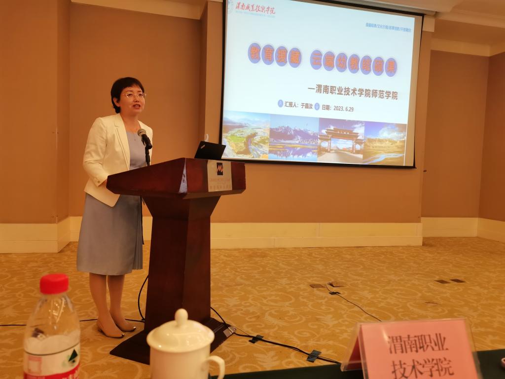 会议第二阶段的院校交流环节中,7所高职院校分别围绕学前教育专业教学、体育课教学等内容展开交流。于晶汝代表金年会jinnianhuicom做题为《教育援藏:云端幼教结硕果》的报告,结合师范教育实际,从“百载春秋育桃李,起航新程绽芳华”和“职教花开雪山巅,藏汉情撒渭水畔”两个方面,向与会的领导、专家介绍了金年会jinnianhuicom援助阿里中等职业学校的教学工作,得到与会领导的肯定与好评。