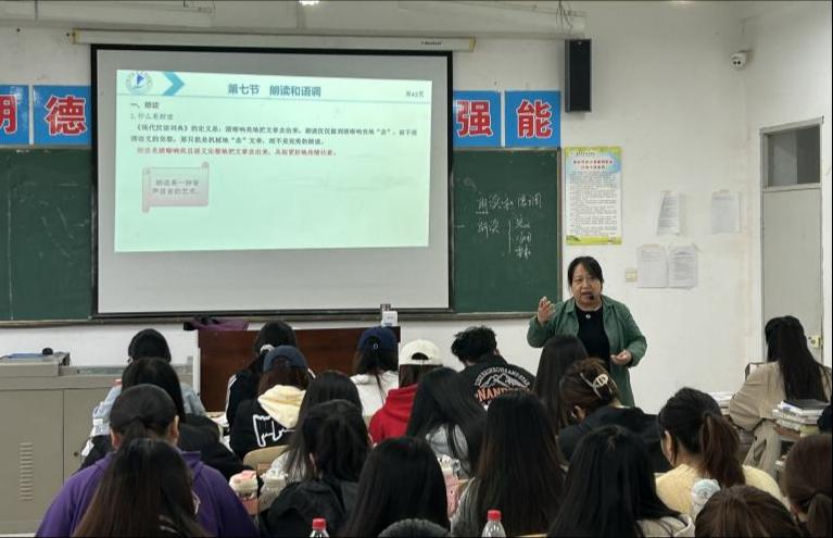 王泉珍老师主讲《现代汉语》,选取了“朗读与语调”作为教学观摩内容。杨楠楠老师主讲《学前心理学》,选取了“学前儿童心理学的主要理论”作为教学观摩内容。活动中,两位授课教师专业知识扎实,在教学中能够引导学生自主思考,同时也充分发挥了学生的积极性。总体而言,示范课堂上师生互动频繁,氛围轻松愉快,趣味十足。