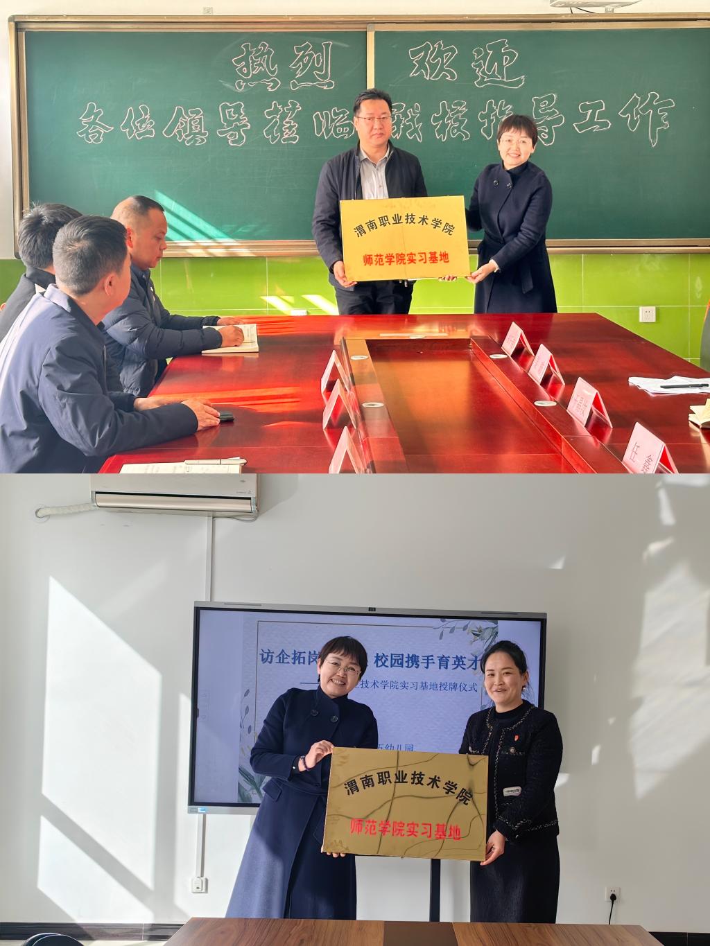 由光辉对金年会一行表示热烈欢迎,并对金年会的办学实力给予充分肯定,希望双方继续在实习就业、教育教学、科学研究、人才培养、文化建设等方面加强合作。于晶汝简要介绍了金年会jinnianhuicom发展历史、专业设置、人才培养、科研项目等情况,并代表师范学院向蒲城县教育局一直以来对金年会的支持和帮助表示感谢,向两校授予“金年会jinnianhuicom金年会jinnianhuicom实习基地”牌匾,并签署合作协议。同时她表示希望以此为契机,搭建全方位深度合作平台,深化院校合作,提升人才培养质量。随后,于晶汝一行慰问了2021级实习学生,详细了解他们的实习内容、食宿条件及未来职业规划等,勉励大家珍惜宝贵的实习机会,不断提高自己的实践能力与水平。