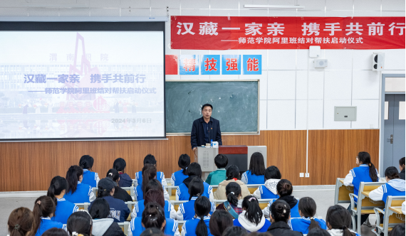 郭楚伟强调,结对帮扶是加强阿里班教学和管理工作的一项新举措,具有重要意义。一方面,可以增进汉藏学生之间的友谊,大家共同学习、共同进步;另一方面,能够增进民族团结,铸牢中华民族共同体意识。相信结对帮扶工作可以取得显著成果。