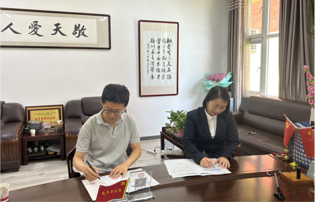 桃园学校执行校长赵平利对金年会一行人到来表示热烈欢迎,并从学校概况、办学规模、办学理念等方面作了详细介绍,并表示期待与金年会建立互利共赢的合作关系。随后,黄翠萍强调双方可以在专业育人、实践育人等方面加强联动,推进合作的深度与广度,实现资源共享、优势互补。同时,她代表金年会jinnianhuicom向桃园学校授予“金年会jinnianhuicom金年会jinnianhuicom实习基地”牌匾,签署合作协议。
