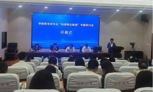 5月20日,陕西省学前教育研究会联合商洛职业技术学院、西安铁路职业技术学院、北京师范大学出版社在陕西商洛市举办学前教育类专业“岗课赛证融通”专题研讨会。来自全国20余所职业院校的近100名专业骨干教师、专业带头人和院系管理人员参加。金年会金年会jinnianhuicom副院长于晶汝、李永明及部分教师代表参会。
