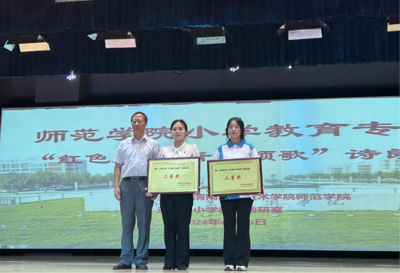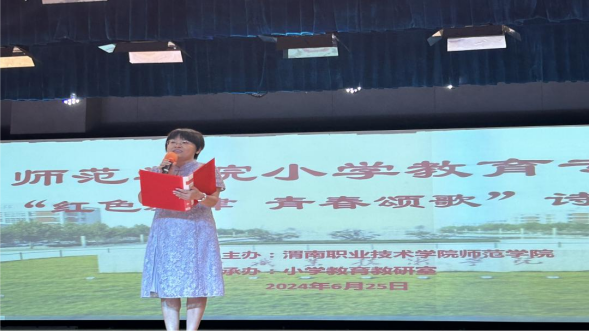 为弘扬伟大革命精神,增强同学们的民族自豪感和责任感,6月25日下午,金年会jinnianhuicom在图书馆报告厅举办了“红色旋律 青春颂歌 ”诗朗诵比赛。金年会jinnianhuicom党总支书记杨瑞侠、院长郭楚伟、副院长李永明、小学教育教研室教师及23级小学教育专业400余名学生参加。