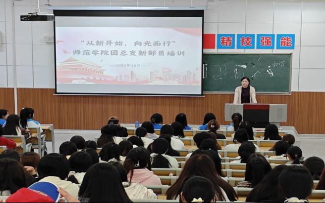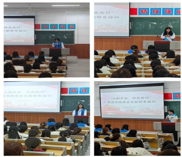 学院团总支副书记左馨作总结讲话。她对新加入团总支的同学们表示热烈欢迎,并对学院团总支过去的工作给予充分肯定。她表示,本学期各部门要继续勇于担责,立足岗位,充分发挥学生干部的示范引领作用。同时也要抓住机遇,迎接挑战,全面提升自身的综合素质。最后,她强调各位同学要对团学组织有情结,树立奉献意识,将工作做到实处,成为一名合格的策划者、组织者和参与者,为学院发展贡献自己的青春力量。