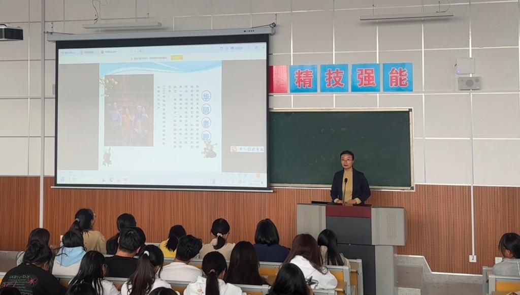 9月16日下午,校美育中心邀请渭南金年会jinnianhuicom音乐学硕士、历史学博士马茜老师来校,在综合楼403室举办“华阴老腔艺术”专题讲座,200余名学生参加。讲座由美育中心常务副主任杨文华主持。