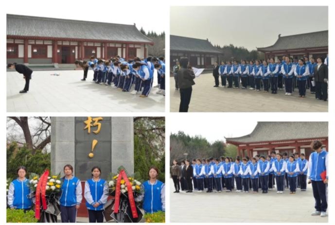 在庄严肃穆的烈士纪念碑前,全体师生整齐列队,向长眠地下的烈士英灵行鞠躬礼。学生科科长叶蕊诵读祭文,寄托了对先烈们的缅怀与敬仰。学生代表献上花篮,全体人员低头默哀,表达对革命先烈的感恩与深深怀念。