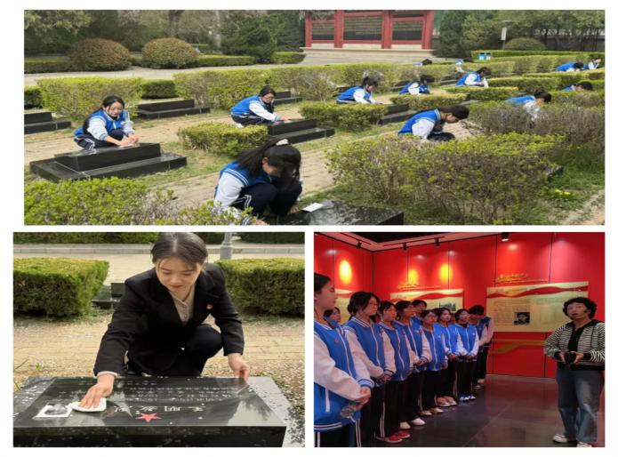 随后,师生分组进行墓碑清洁工作,轻扫落叶、擦拭碑面,一个个细致入微的动作凝聚着对烈士们的无限敬仰。扫墓后,全体师生参观了烈士纪念馆,讲解员生动地讲述了王尚德烈士的英勇事迹以及陵园的历史背景,让在场师生深受触动。
