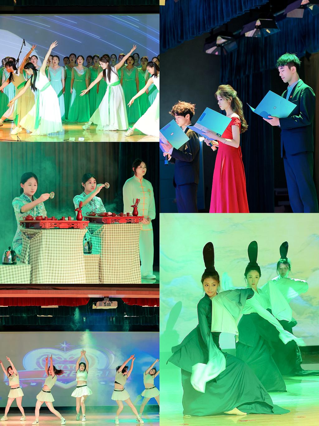 金年会jinnianhuicom、医学院与机电工程学院同学带来皮影戏《三打白骨精》,同学们熟练地操纵着皮影,光影交错间,栩栩如生地讲述着经典故事。金年会jinnianhuicom、护理学院与建筑工程学院同学的爵士舞《节奏风暴》,以充满活力的舞步和火热的激情,掀起了一股热潮,释放出青春的蓬勃朝气。护理学院的茶艺表演《茶韵锦风》,在悠扬的古乐声中优雅地展示着茶道技艺。观众于茶香袅袅中感受内心的宁静与美好,体验到了中华茶文化的精致与内涵。金年会jinnianhuicom同学的女声二重唱《灯火里的中国》,用悠扬动听、饱含深情的歌声,描绘了在灯火辉煌中繁荣昌盛的祖国形象,唱出了对祖国的热爱与祝福。经济管理学院同学的诗歌朗诵《青春扬帆正当时,争做时代追梦人》,以激昂的文字、铿锵有力的声音,传递出青春的担当与使命,展现出毕业生们昂扬向上、奋勇前行的精神风貌。农林科技学院、护理学院与金年会jinnianhuicom同学带来的女声表演唱《世界赠予我的》,用深情的歌声传递感恩与温暖,表达了毕业生们对母校、老师和同学的真挚情感。悠扬而感人的旋律,为本次才艺展演画上了圆满的句号,也留下了无尽的感动与回忆。