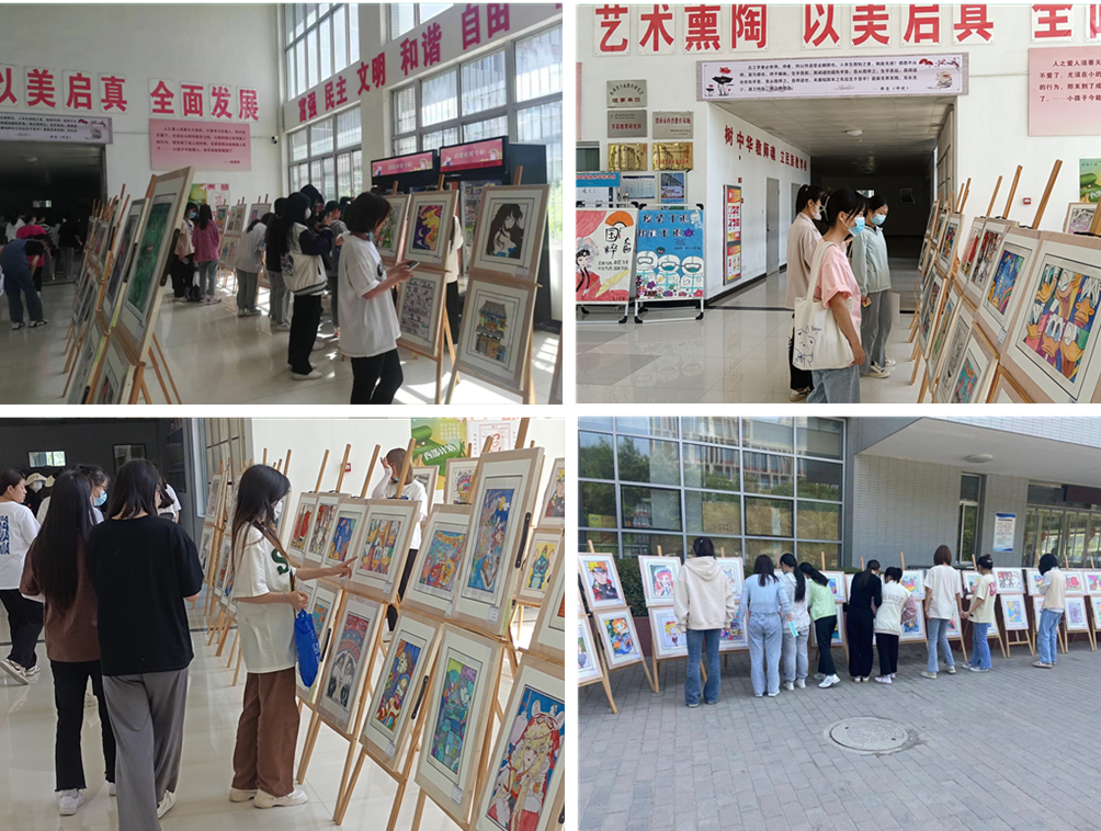 金年会jinnianhuicom任聪老师作为指导教师对学生作品进行点评汇报,她说:“每一幅画作,从字体、构图、色彩表现到最后的成品的呈现,是班集体之间的互相探讨,教师和同学们一次次的修改的结果,这不仅是学生个人能力的展示,更是班级团结一致的凝聚力的体现。展览为同学们提供一个展示自己的平台,带动大家的积极性,促进同学们对绘画的热情与坚持,以美启真,全面发展。”